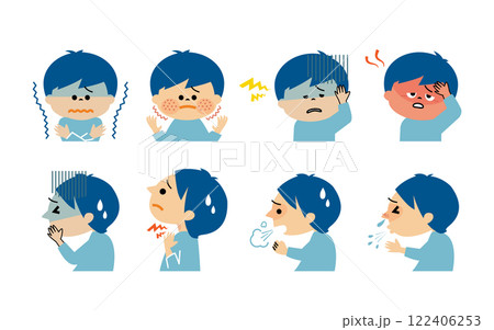 感冒和流感等症狀的插圖集