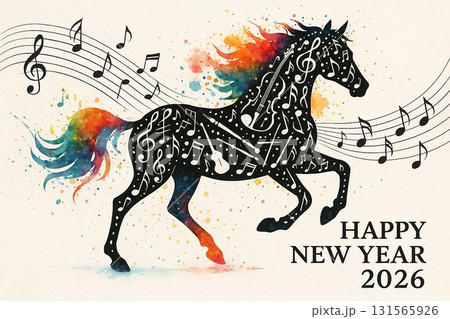音樂與馬設計新年賀卡 | 樂譜,藝術,2026