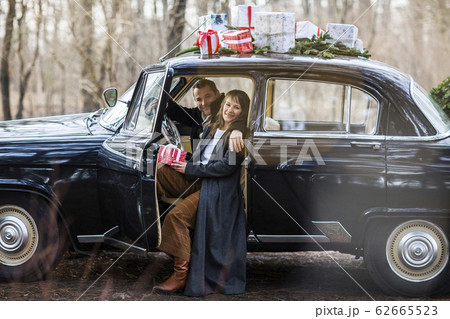 Young beauty girl and her boyfriend eating together chocolate in nature together , fall scene on ground