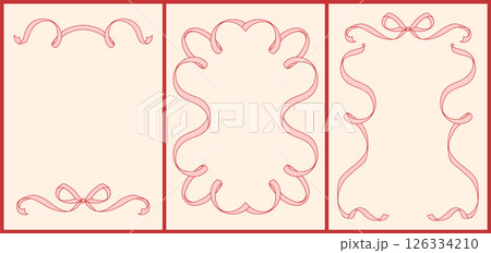 Elegant pink ribbon frames with copy space for invitations, romantic cards, birthday greetings, and decorative borders in coquette vintage templates