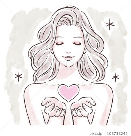 女神/上帝/天使/丘比特/手裡拿著一顆心的女人插畫素材