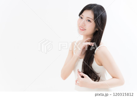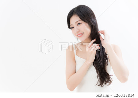 照顧頭髮的年輕女子