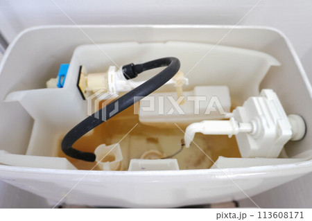 清潔前馬桶水箱內部
