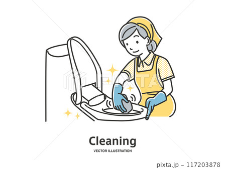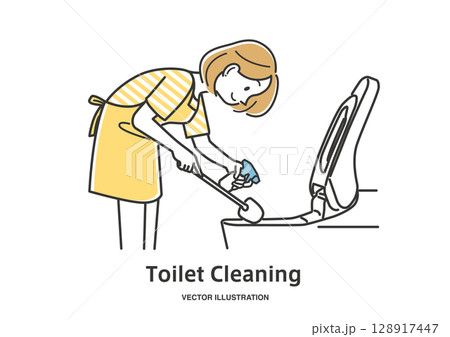 一名婦女清潔廁所的插圖素材