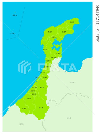 日本城市和石川縣地圖,標有城市名稱和行政區劃(含城市和城鎮名稱及行政區劃線)