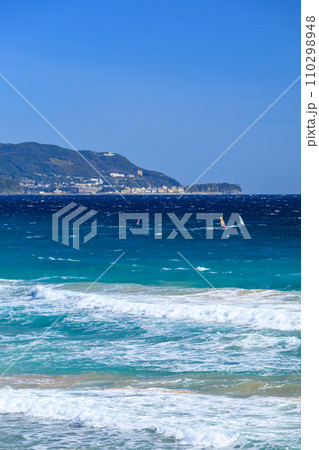 巨浪拍打著海洋,警示標誌提醒人們注意海上事故。