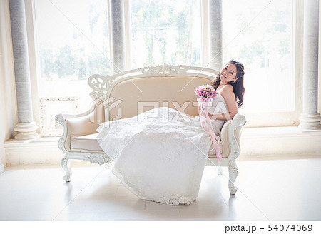 華麗的枝形吊燈教堂彩色玻璃新娘形象
