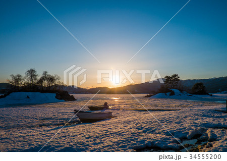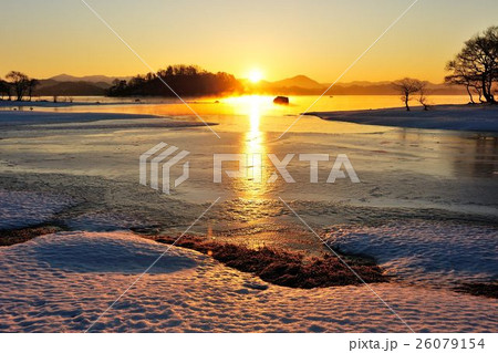 開花在篠原湖表面的一朵冷淡的花在冬天后面