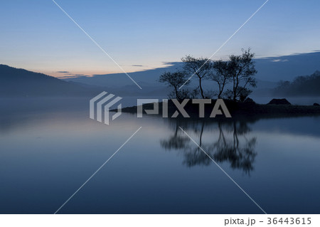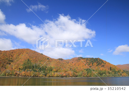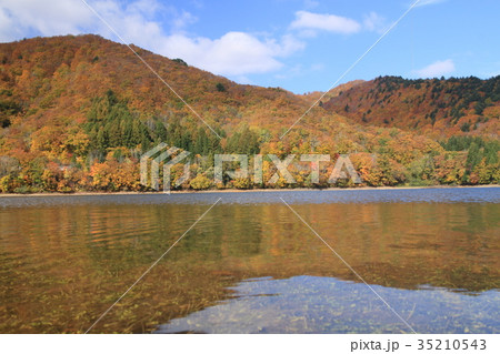 裡磐梯的初夏:清晨的檜原湖水面上倒映著樹木和磐梯山