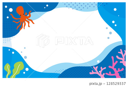 斯堪的納維亞可愛的矢量白色背景框架插圖素材的海中風景與海豚、水母和魚