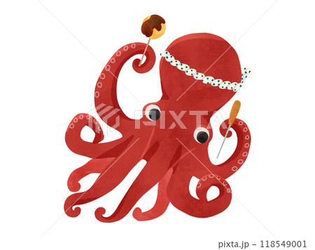 扭曲頭帶中的章魚拿著章魚燒,水彩風格的手繪插圖