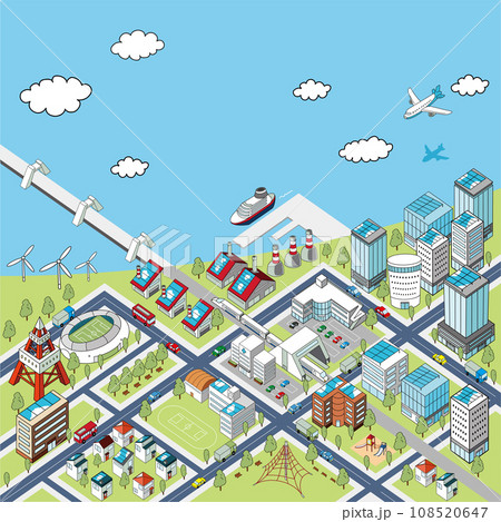 海邊城市景觀的俯視圖