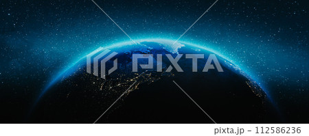 地球,日本列島,向上,藍色,太陽,日落(3DCG圖像)