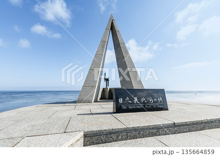 北海道稚內市,北海道的夏天,晴天的宗谷岬“日本最北點的紀念碑”