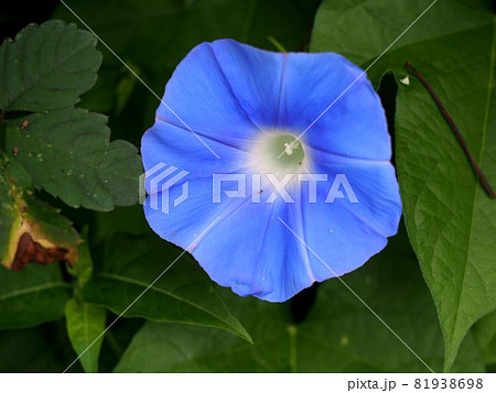 在陰涼處盛開的紫紅色牽牛花(沿著榎口川生長的牽牛花)