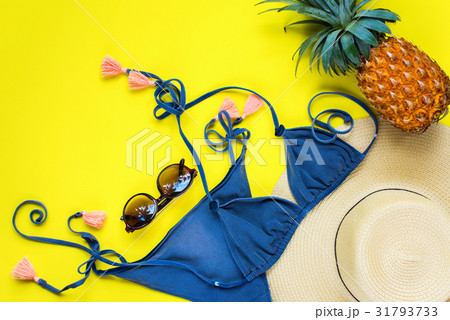 Beach Season Straw Hat Slippers Shorts Pineapple