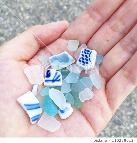 The girl holds a voluminous transparent heart with the sea inside, a memory of summer, love for the ocean