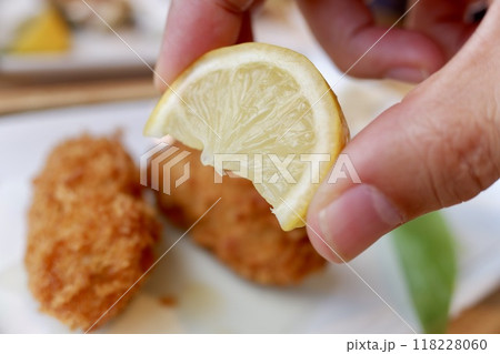 一位女士正在美味地吃牡蠣 攝影由 Pia Bandai 提供。