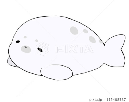 手繪插圖,顯示一隻海豹以草率的姿勢躺著,白色背景上的切口