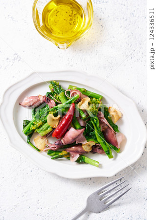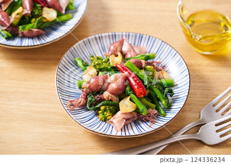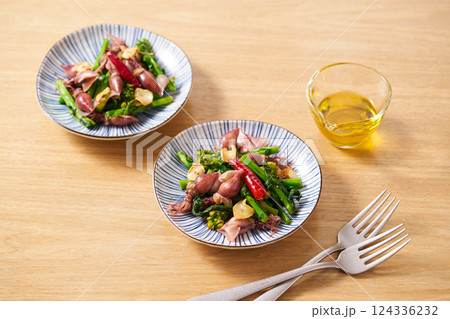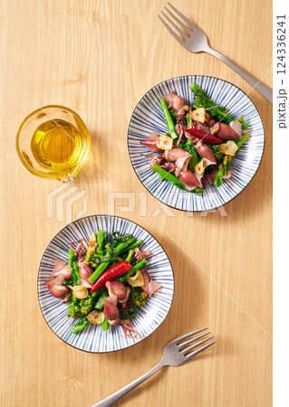 雞尾酒蝦、煎蛋捲蕎麥麵和芝麻醬秋葵