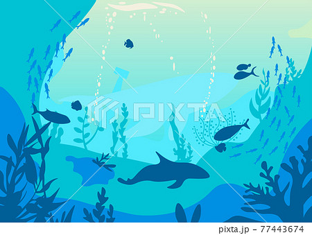 水下魚、海豚和鯨鯊的矢量圖解背景