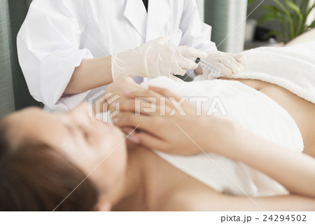 一名年輕女子正在接受透明質酸和肉毒桿菌注射的臉部護理治療,以抗衰老