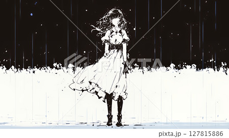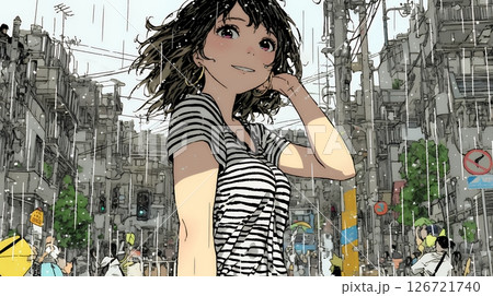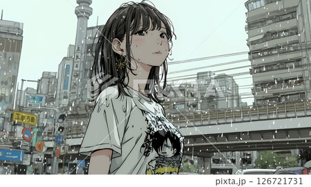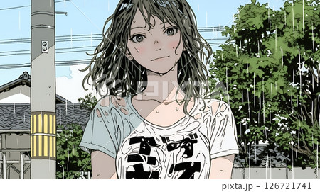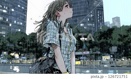 插畫素材:穿著制服的女高中生(避雨所/梅雨季節/6月)