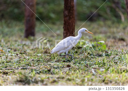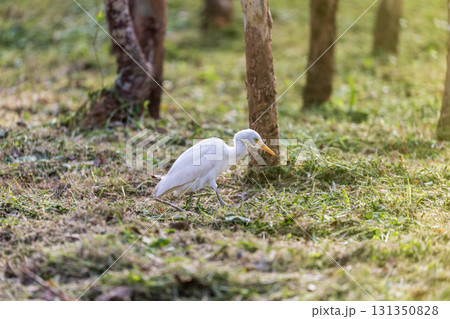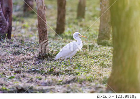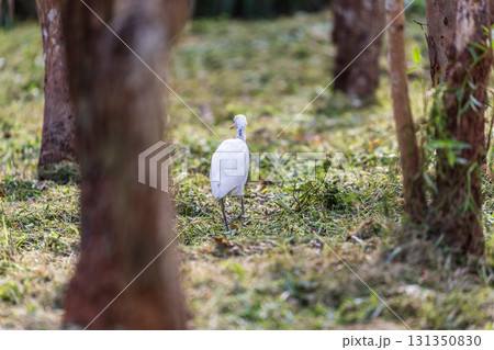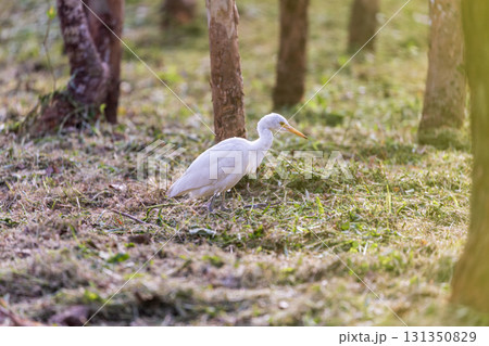靜謐時光:白鷺在樹林中覓食
