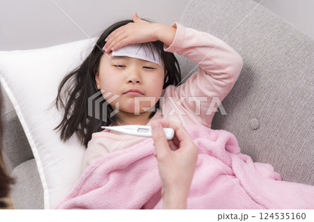 體溫計發燒降溫片少女