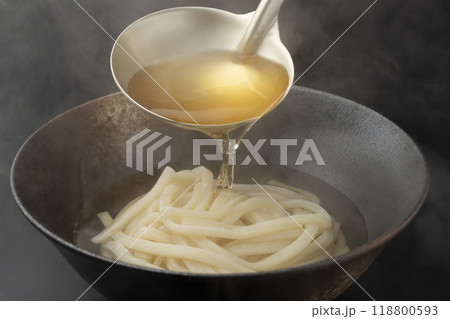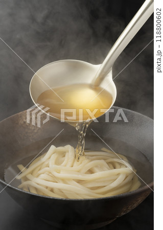 將熱湯淋在烏冬面上