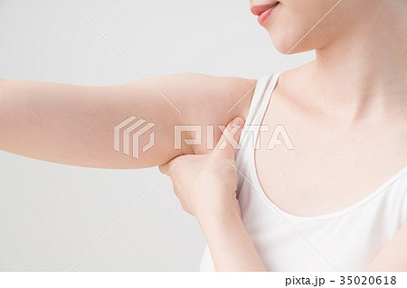 女人做自我按摩,肩膀,放在一邊