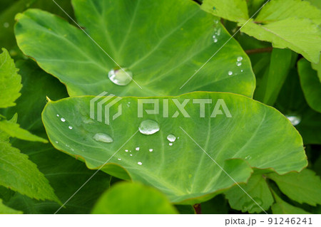 儲存雨水的芋頭葉