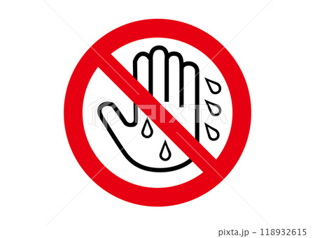 禁止濕手 禁止標記 禁止用濕手觸摸的象形圖插圖