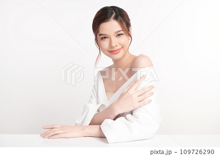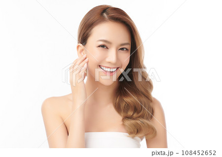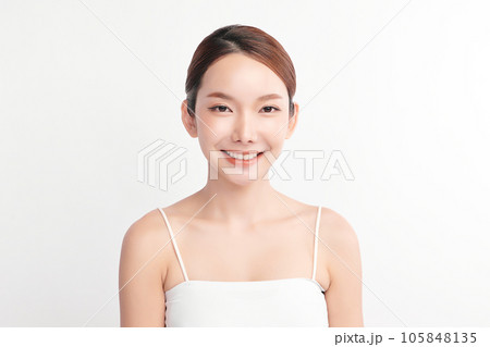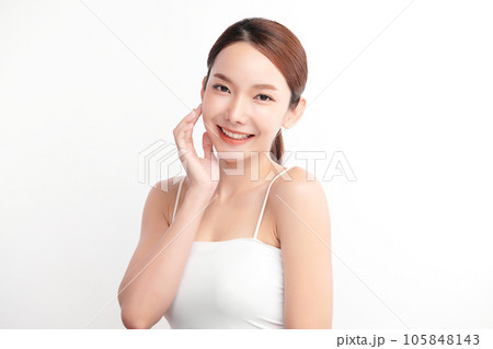 Beautiful young asian woman with clean fresh skin on white background, Face care, Facial treatment, Cosmetology, beauty and spa, Asian women portrait.