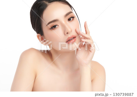 Glowing skin make up style of beautiful young Asian model isolated on white background.