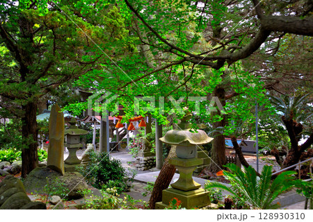 大瀨神社境內的圖像,該神社以其淡水聖池而聞名,位於靜岡縣沼津市西浦中部地區伊豆半島的大瀨崎(2)