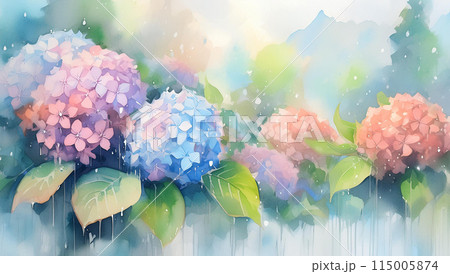冬季色彩漸層、雪花和針葉樹水彩背景