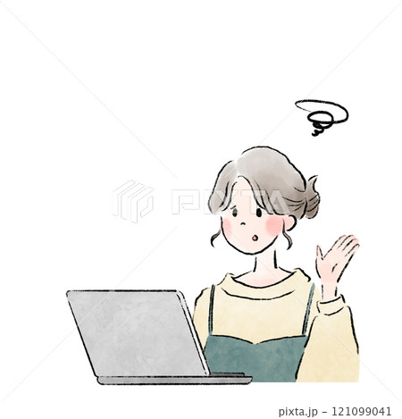 一名陷入困境的婦女在筆記型電腦上工作的插圖