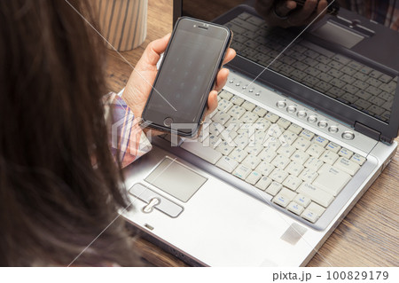 [使用筆記本電腦的女士]