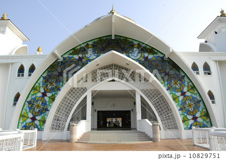 Entrance of Malacca Straits Mosque (Masjid Selat Melaka) in Malacca