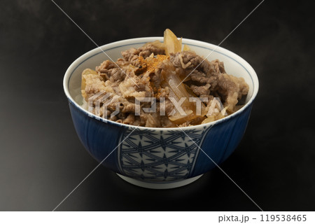 牛蓋牛肉碗裝在碗裡
