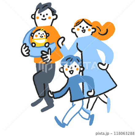 一家人歡快地散步庫存插畫素材