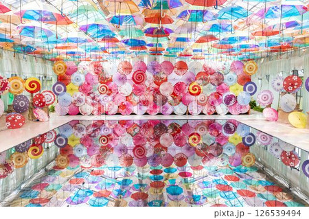 福島縣豬苗代町香草園色彩繽紛的“雨傘天空”