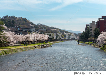 從石川縣金澤市東山河畔綠地附近的東茶屋街眺望淺野川
