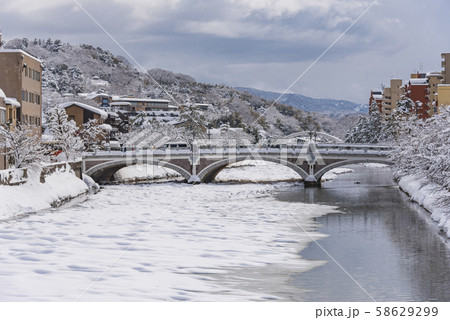 Kanazawa Higashiyama地區邊界老鎮雪場面