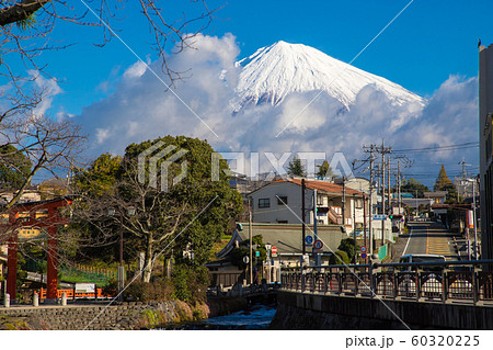 靜岡縣富士宮市的富士山本宮淺間大社大鳥居和富士山