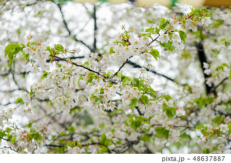 櫻花盛開,白色的櫻花,上野溫泉公園花