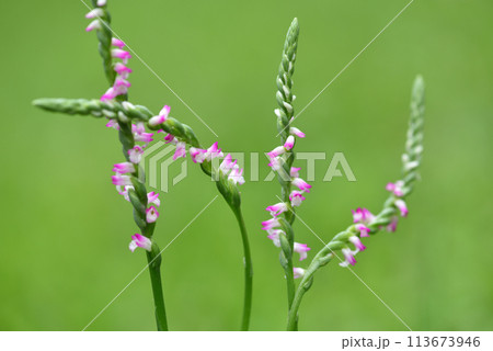 公園草地上盛開的粉色綬草特寫