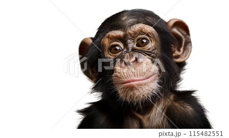 年輕黑猩猩的迷人肖像,表情好奇。背景浮水印。