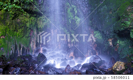 八丈島神秘的白絲瀑布和唐瀧瀑布的瀑布盆地
